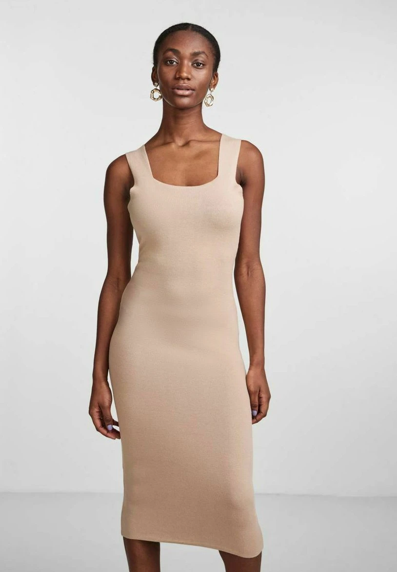 Yasemil Strap Midi Dress – Etui-Jurk – Beige/Mottled Beige